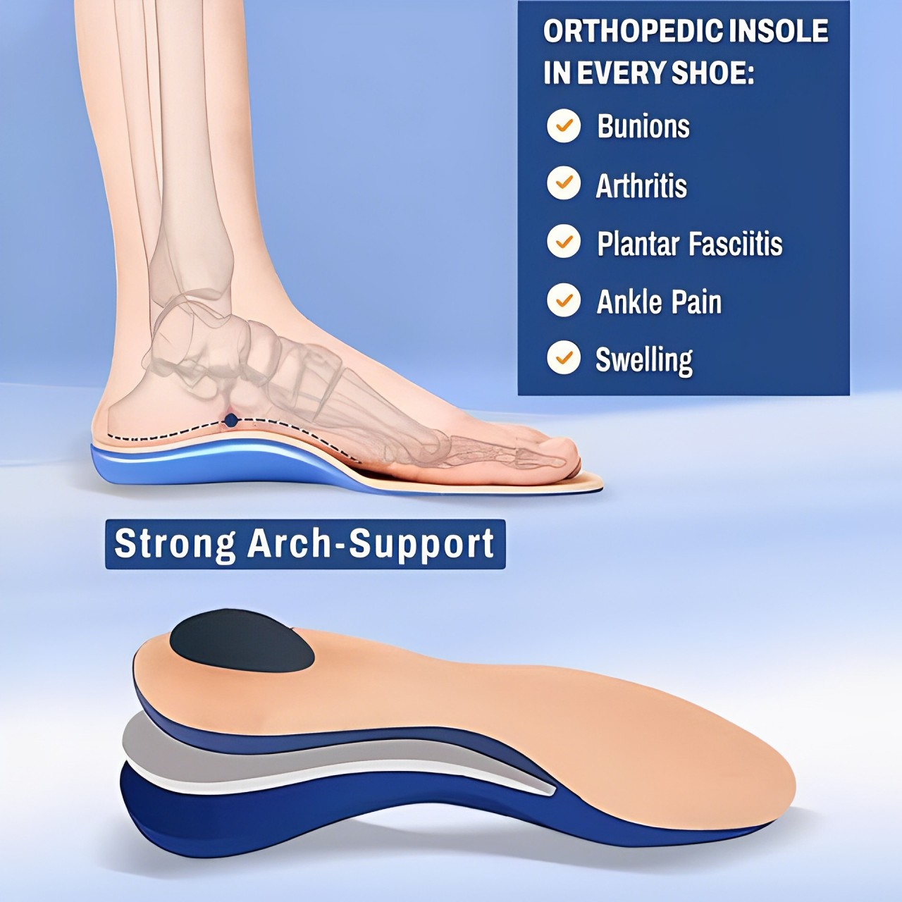 Arch support, highly elastic insole